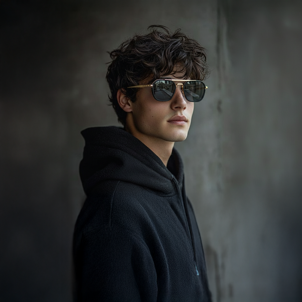 Que Metal Club takes the timeless clubmaster silhouette and sharpens it with metallic detailing and gradient lenses. Available in Transparent Black, Grey Blue, and Gradient Grey, it’s a versatile essential that blends vintage charisma with everyday confidence.