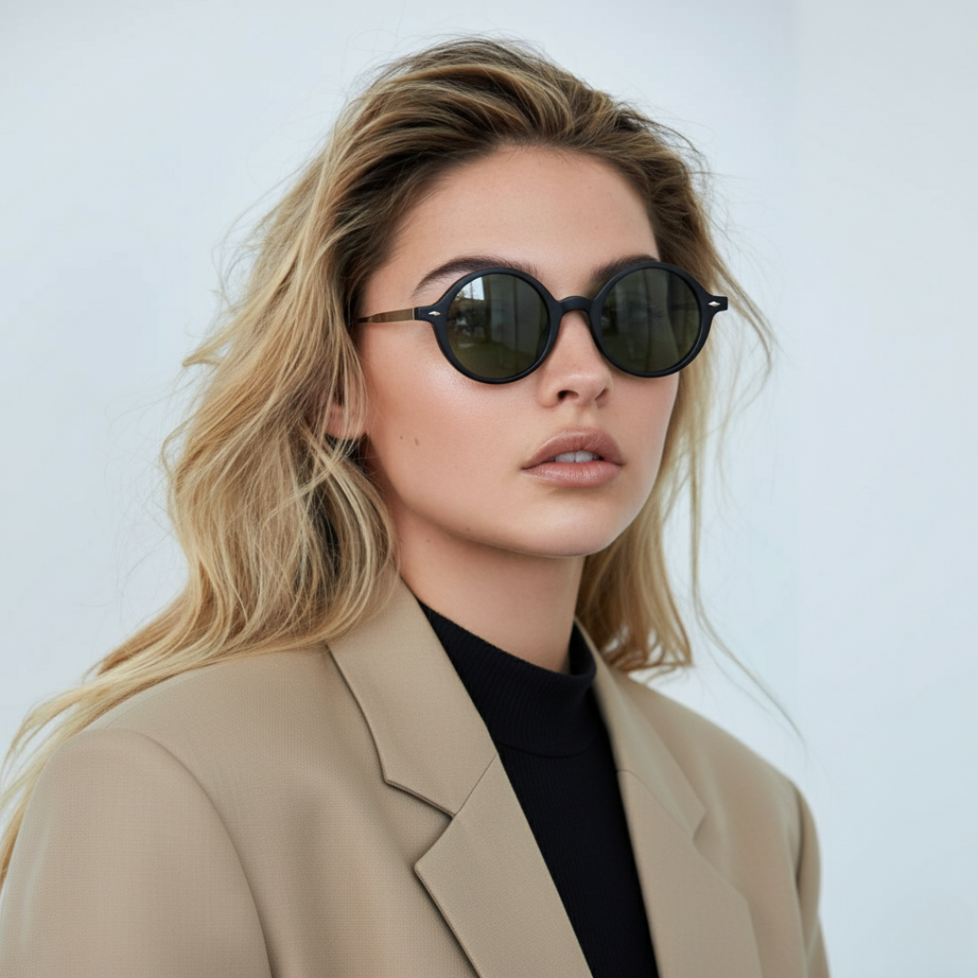 Que Loop revives the classic round silhouette with a contemporary spin. Its matte black frame, green lenses, and slim metallic temples make it effortlessly cool. UV400 protection and lightweight comfort bring utility to timeless style.