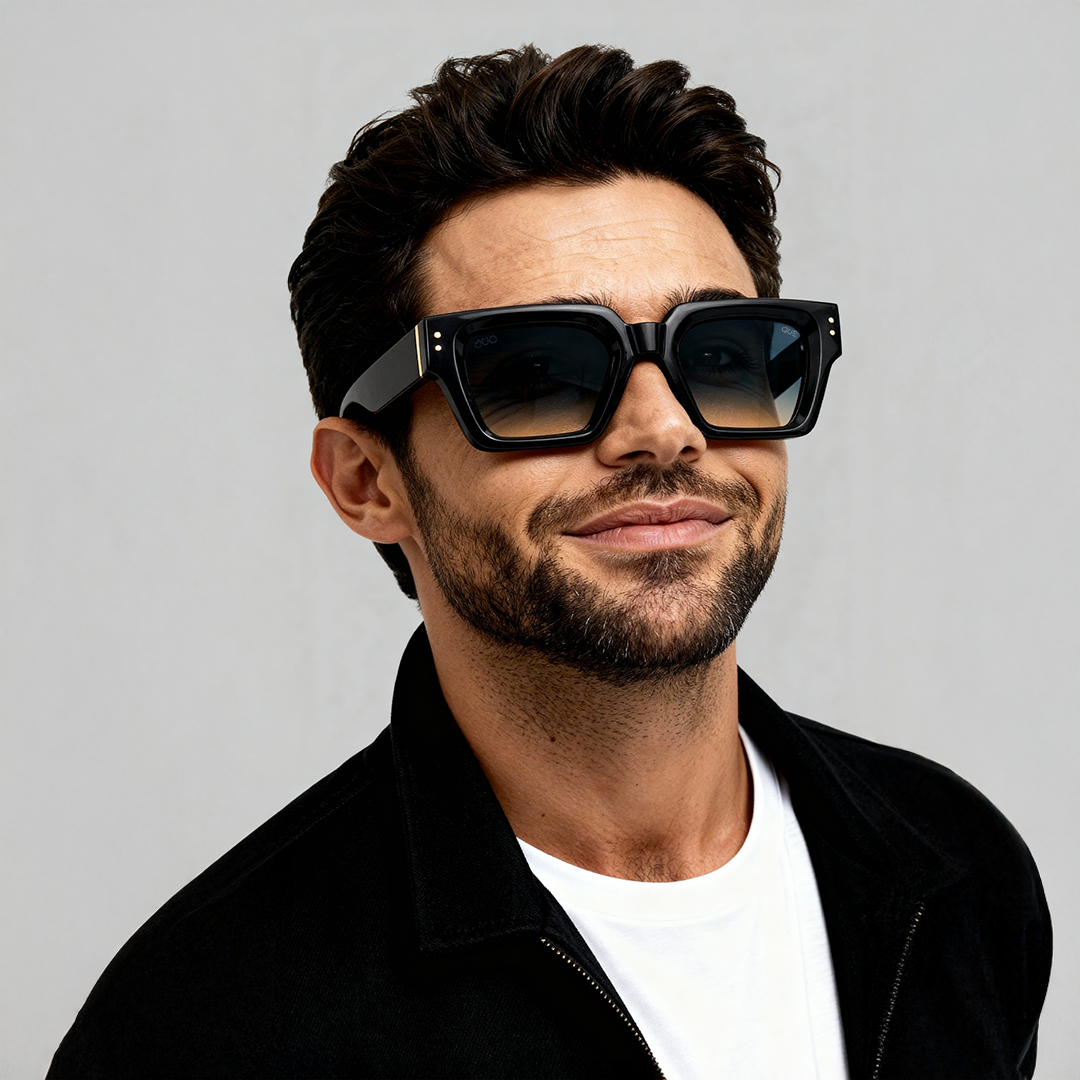 Que Bound breaks convention with its bold geometry and gradient lenses that shift from sky blue to warm amber. The high-gloss frame with gold accents gives it a powerful yet versatile edge. UV400 protection and precision design keep it functional while turning heads.