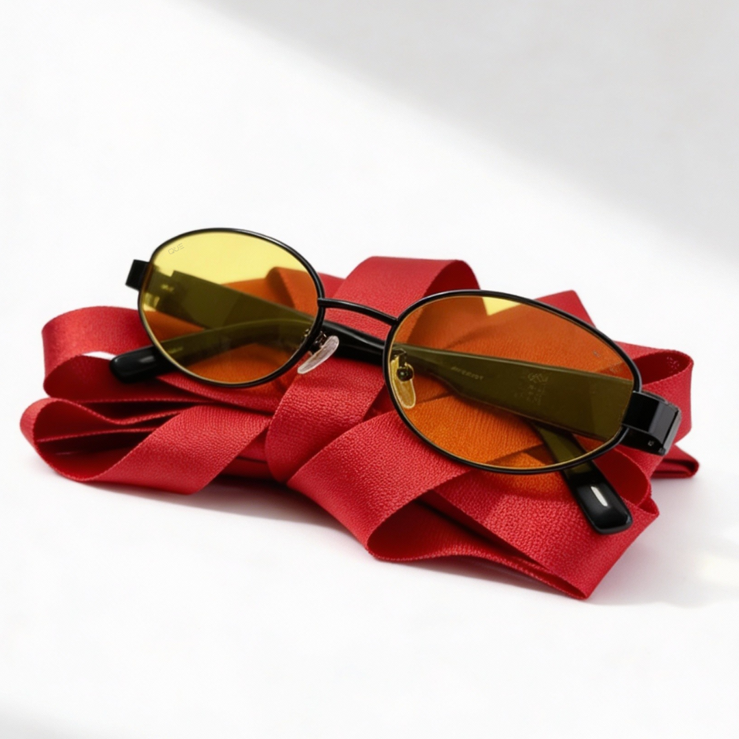 Que Pixel takes vintage round frames and reboots them with bold tinted lenses, slim black temples, and a snug medium fit. Lightweight, UV400- protected, and built to pop, it’s the pair that looks just as good in mirror selfies as it does in everyday fits.