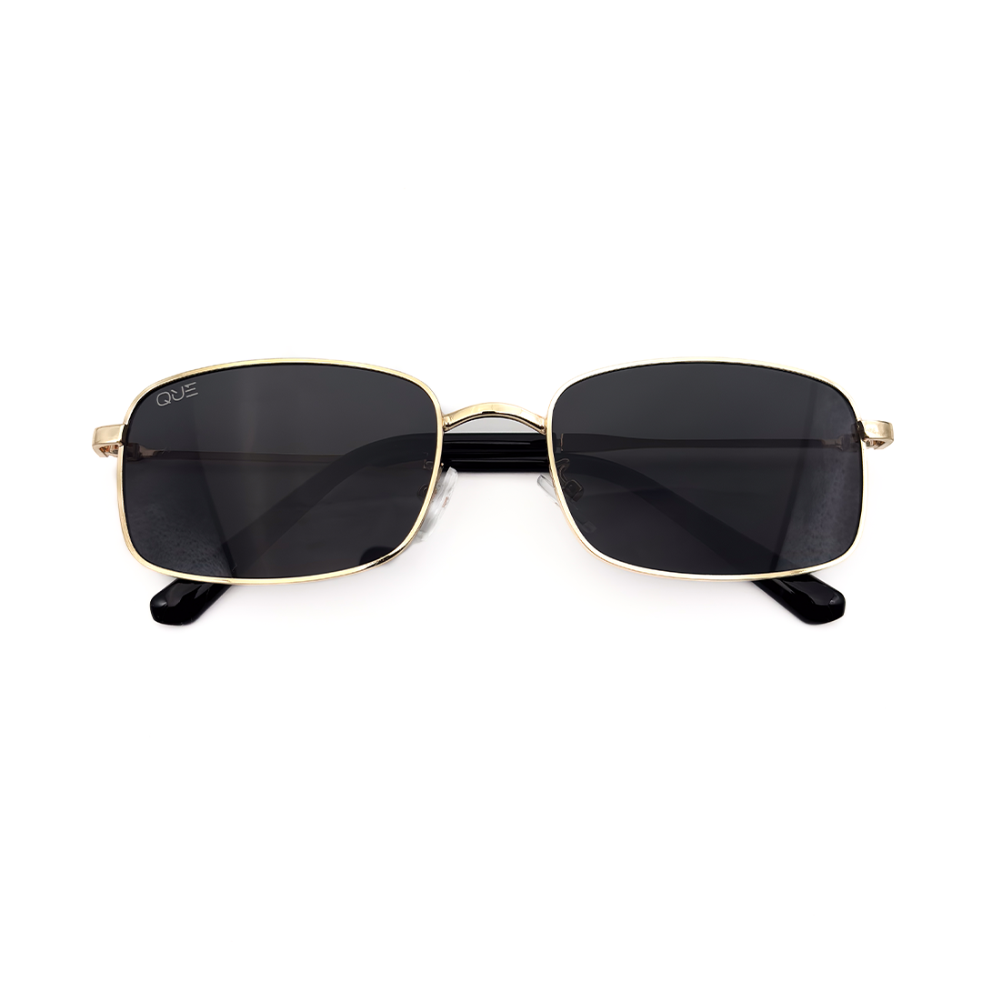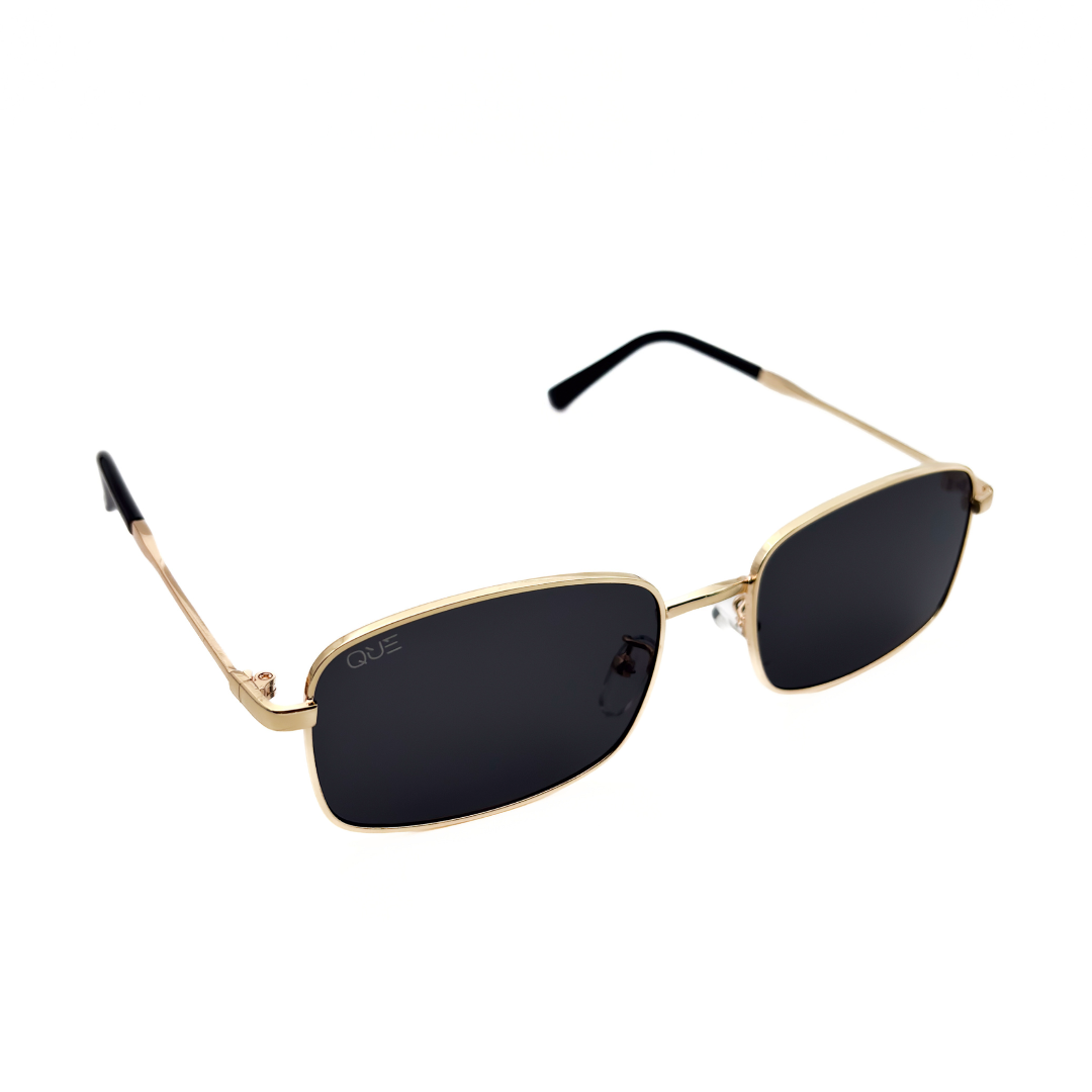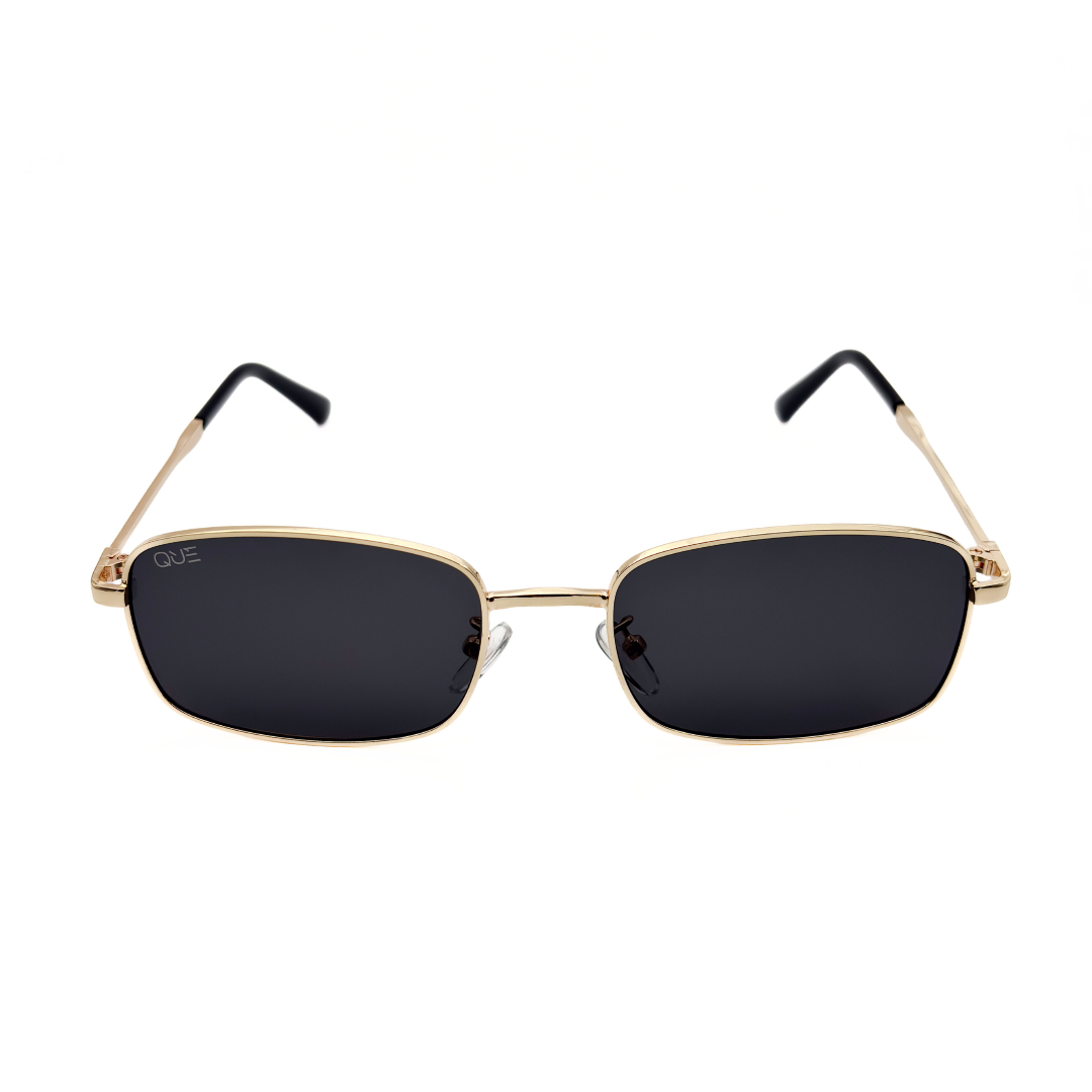 Que Command sunglasses feature a sleek gold metal frame paired with deep dark lenses for a refined, powerful look. The sharp rectangular silhouette delivers structure, precision, and timeless authority.