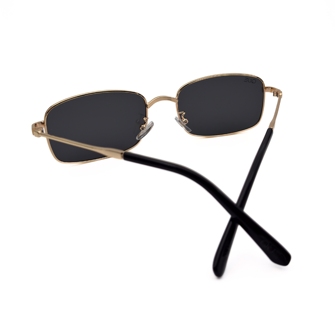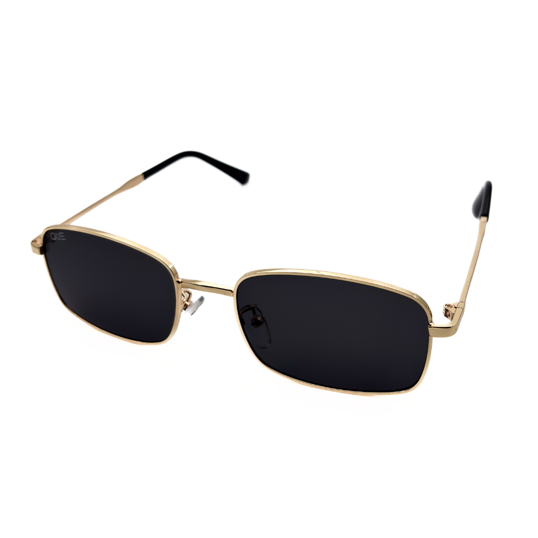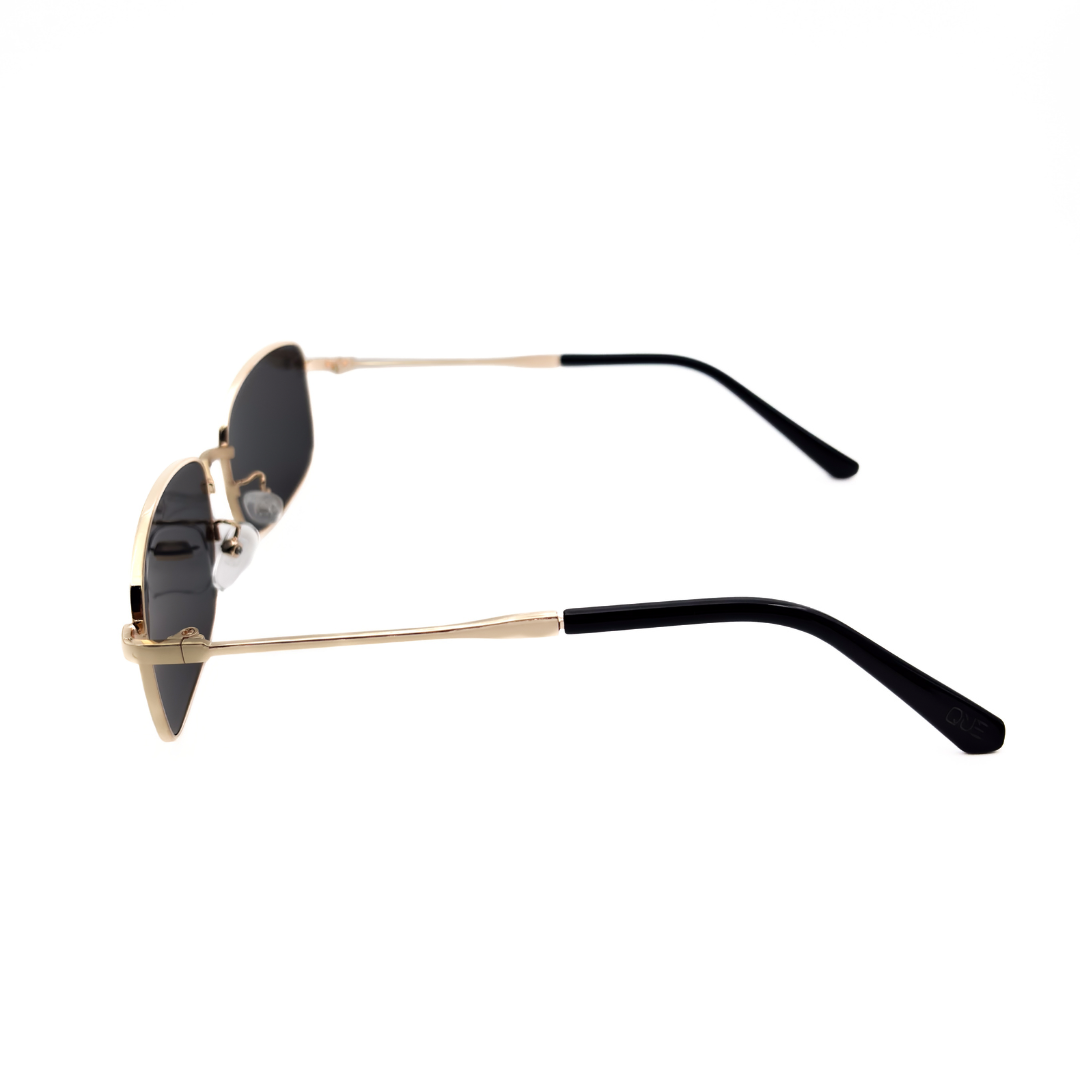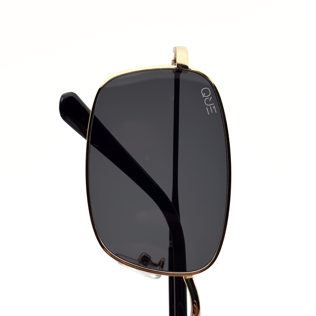 Que Command sunglasses feature a sleek gold metal frame paired with deep dark lenses for a refined, powerful look. The sharp rectangular silhouette delivers structure, precision, and timeless authority.