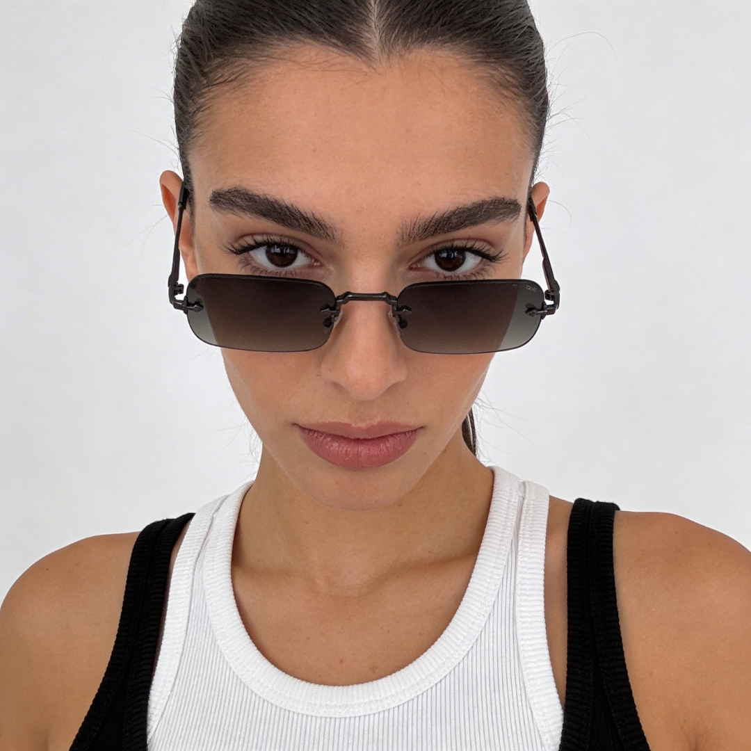 Que Subtle brings a clean, modern twist to rimless design with its crisp rectangular lenses, dark smoke tint, and precision cut edges that create a silent but confident presence. The lightweight metal bridge and minimal hardware keep the frame ultra comfortable while giving it a refined, futuristic look.
