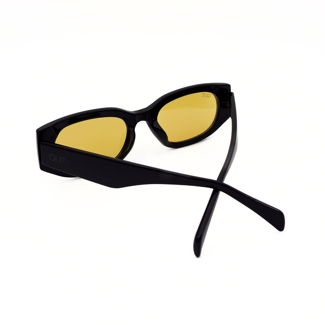 ⚫ Keep the outfit minimal. Let the yellow lenses lead.