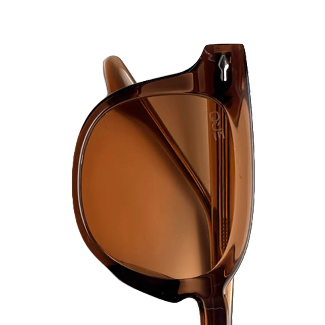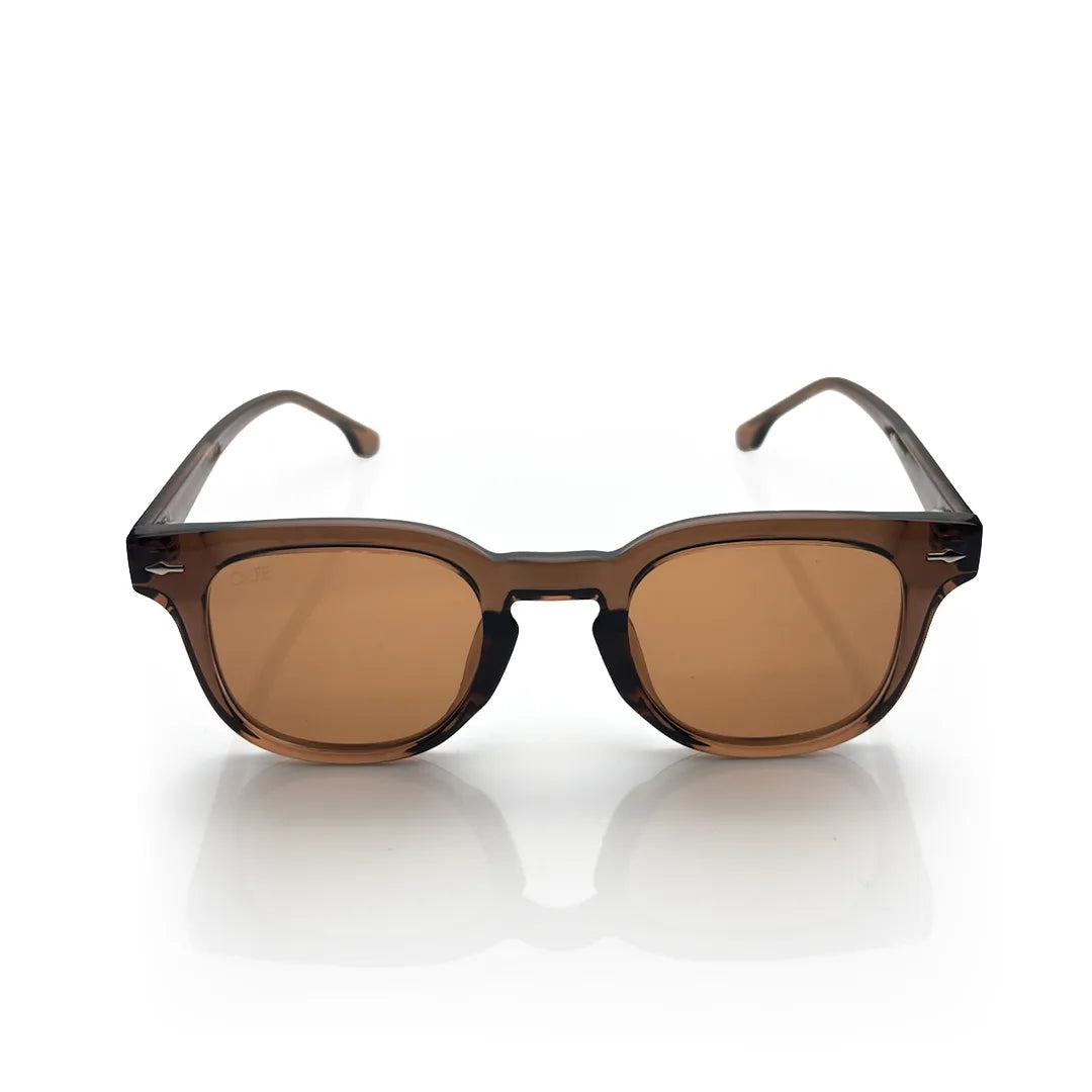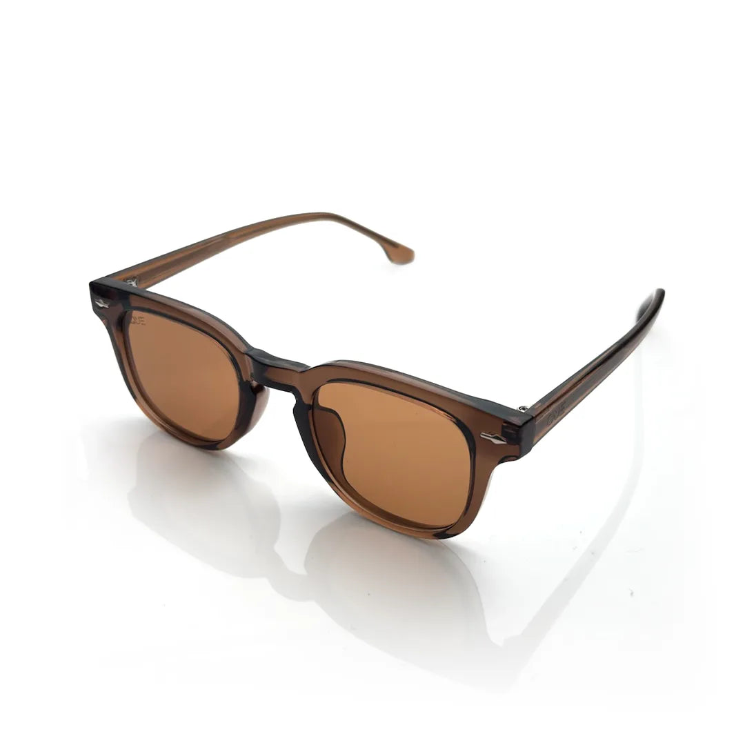 Que Tone sunglasses feature a translucent brown frame with warm-tinted lenses that add instant depth to your look. The round silhouette with a subtle brow detail keeps it clean, balanced, and effortlessly stylish.
