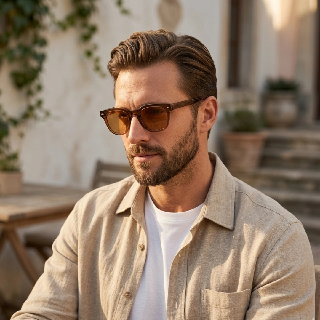 • Soft round silhouette with a refined brow detail for a balanced, effortless look