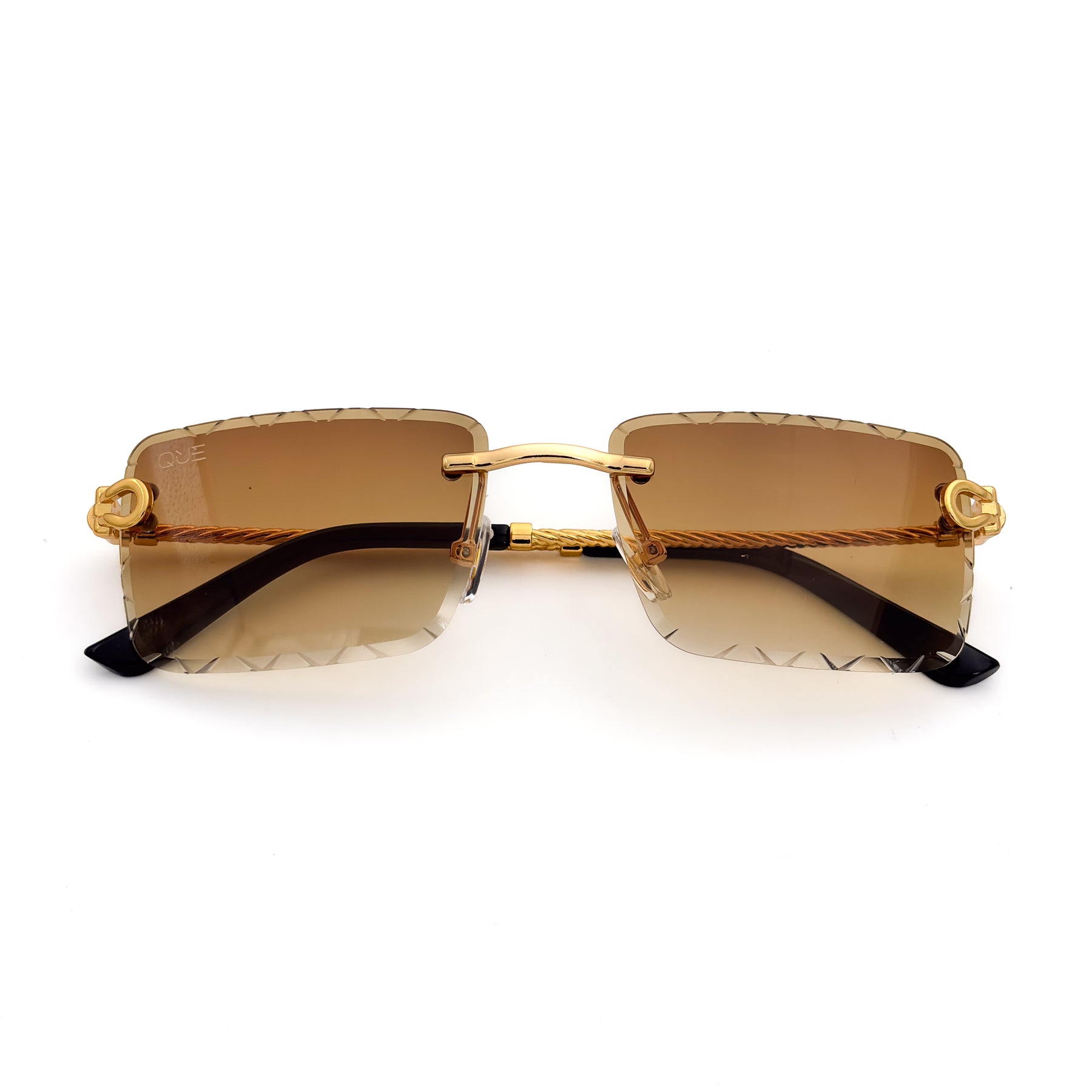 Highborn is crafted to look and feel premium from every angle. The diamond cut rimless lenses catch light beautifully, while the twisted gold temples and sculpted metal bridge add a rich, royal character. The warm gradient brown lens keeps the look grounded, making this frame a blend of luxury fashion and effortless everyday wear.