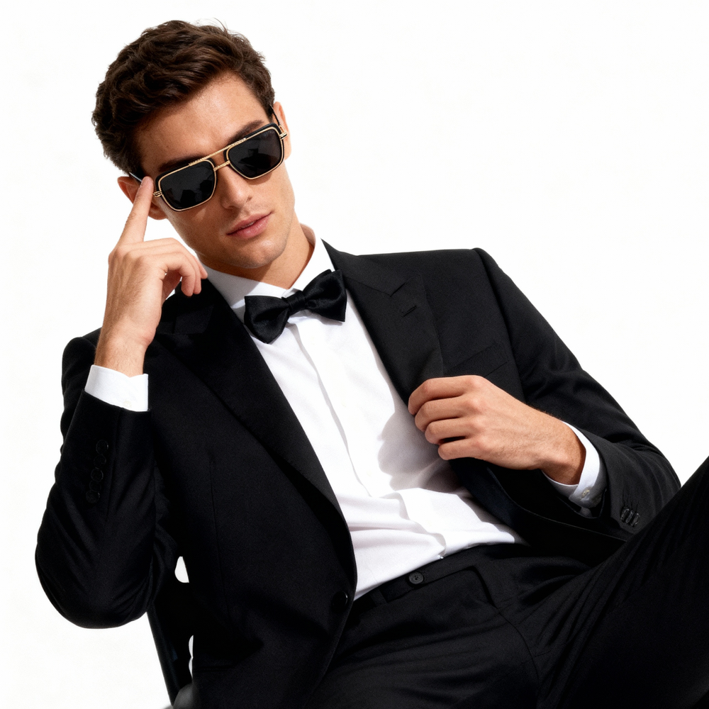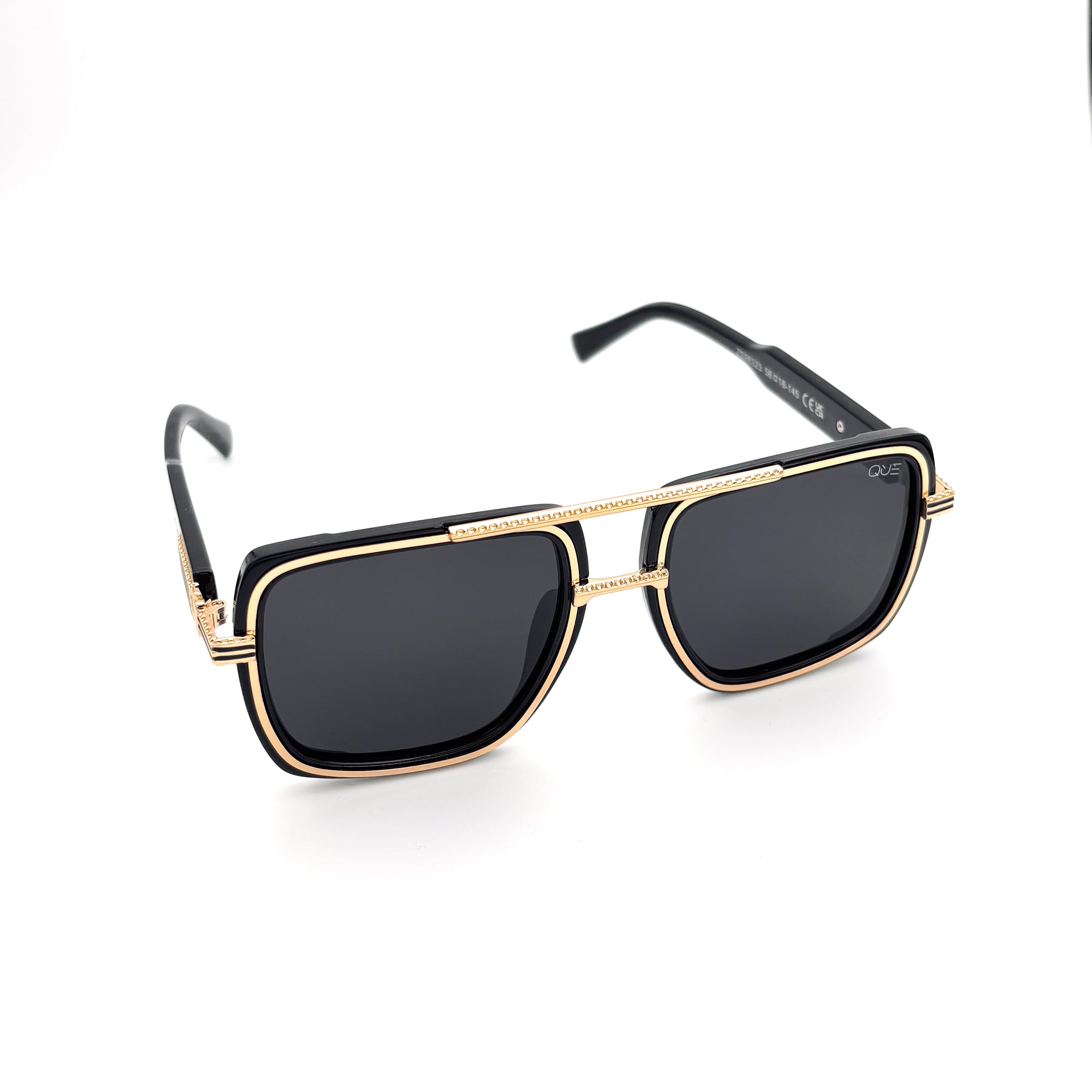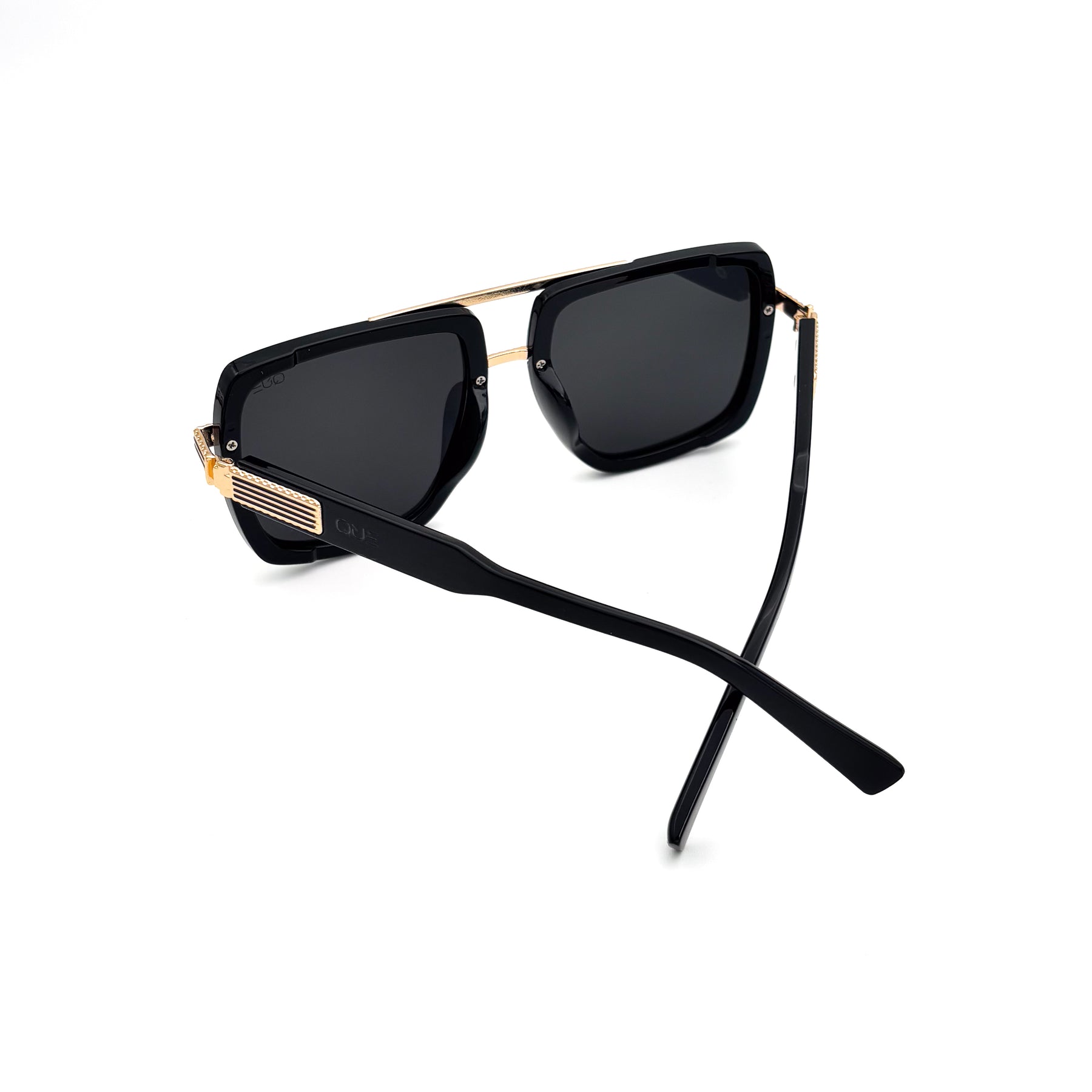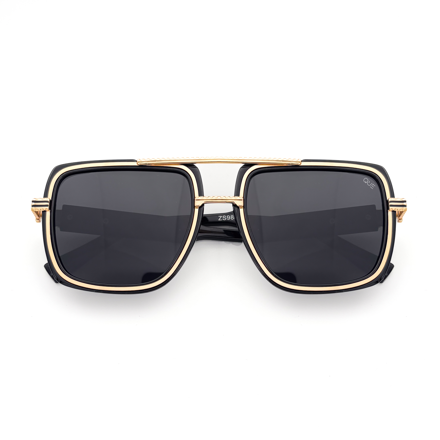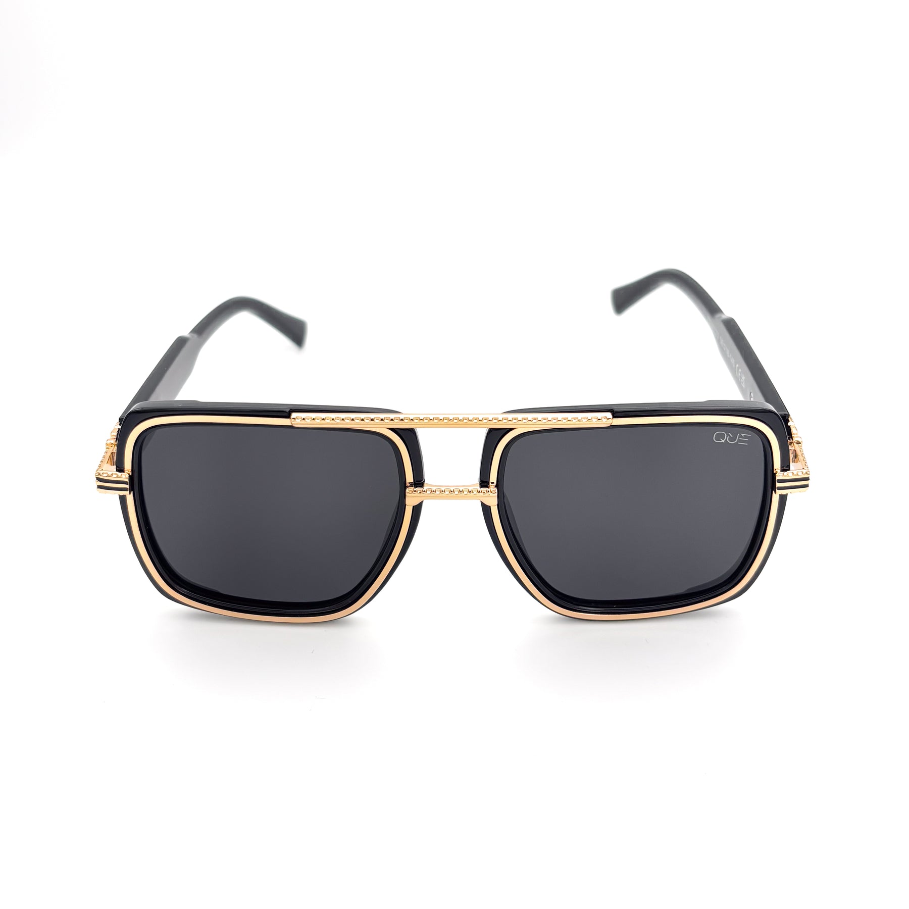 Que Titan commands attention through precision. Its black frame lined with gold detailing and dual-bridge design reflects authority and control. UV400-protected lenses and solid construction ensure strength wrapped in sophistication.