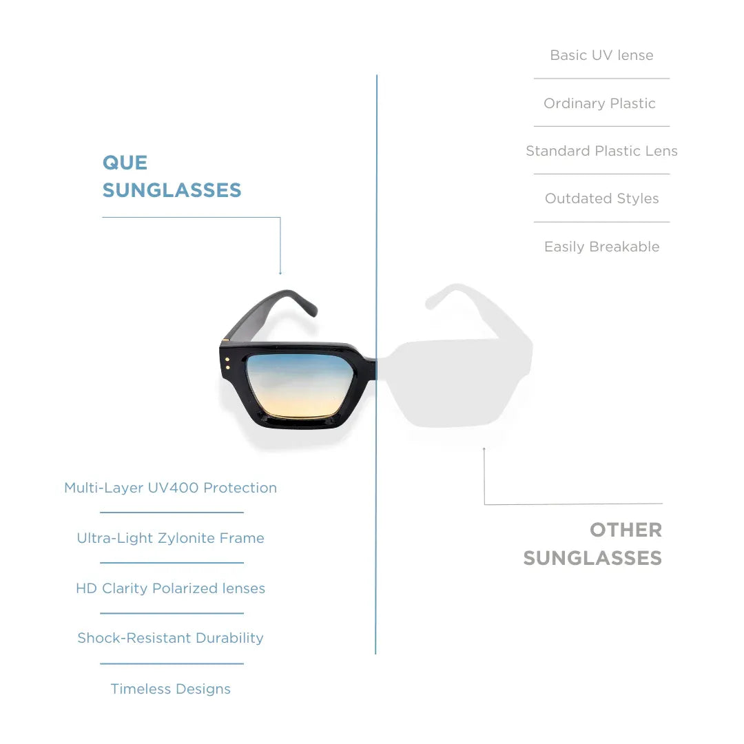 At QUE, we believe great eyewear should last. Every pair of QUE sunglasses is crafted with precision, premium materials, and strict quality control standards. We stand behind our craftsmanship.