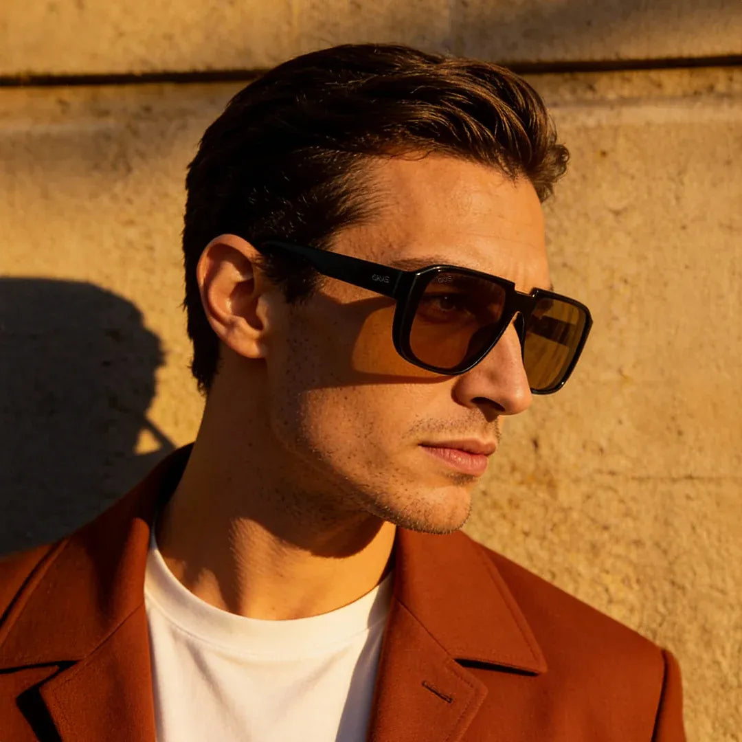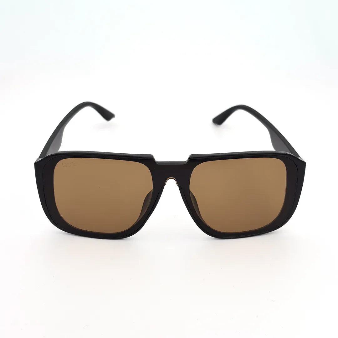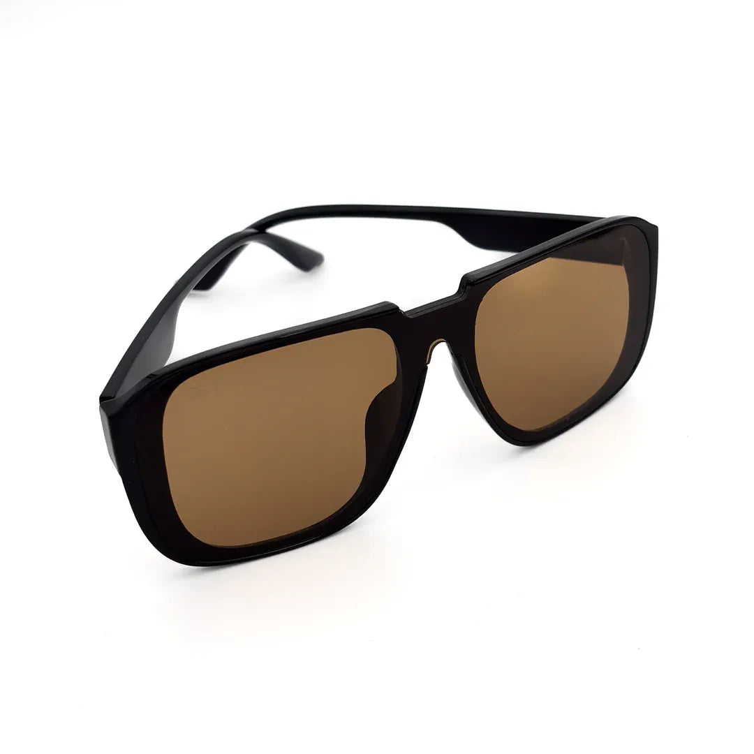This frame brings the attitude of a vintage aviator and sharpens it with clean rectangular lines. The deep brown lenses, strong top bar, and sculpted curves give it a confident, road-ready vibe. Built for everyday wear, it blends comfort with a premium lifestyle edge that stands out without trying too hard.