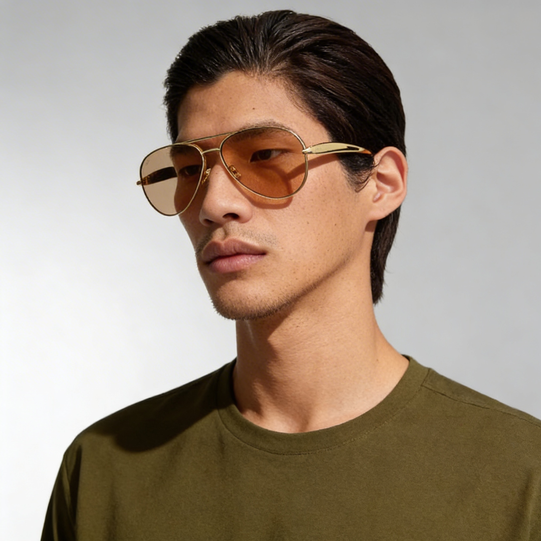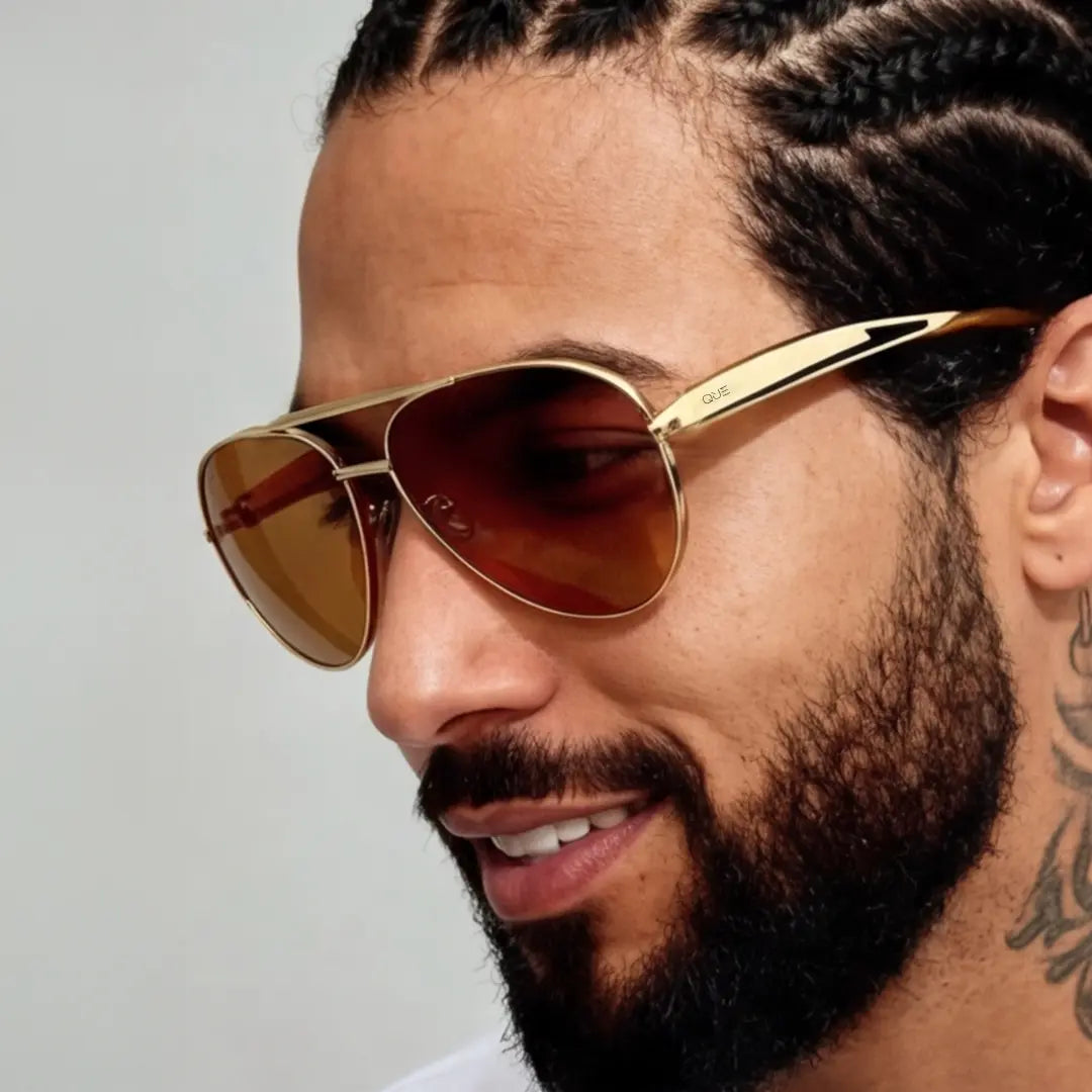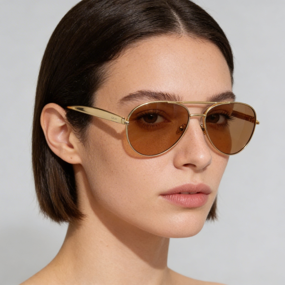 Que Winged takes the timeless aviator and gives it a luxe refresh - wide-fit silhouette, smooth curves, and gold-tone frames paired with warm amber lenses. The result? Sunglasses that flatter every face and turn casual sunlight into your personal spotlight.